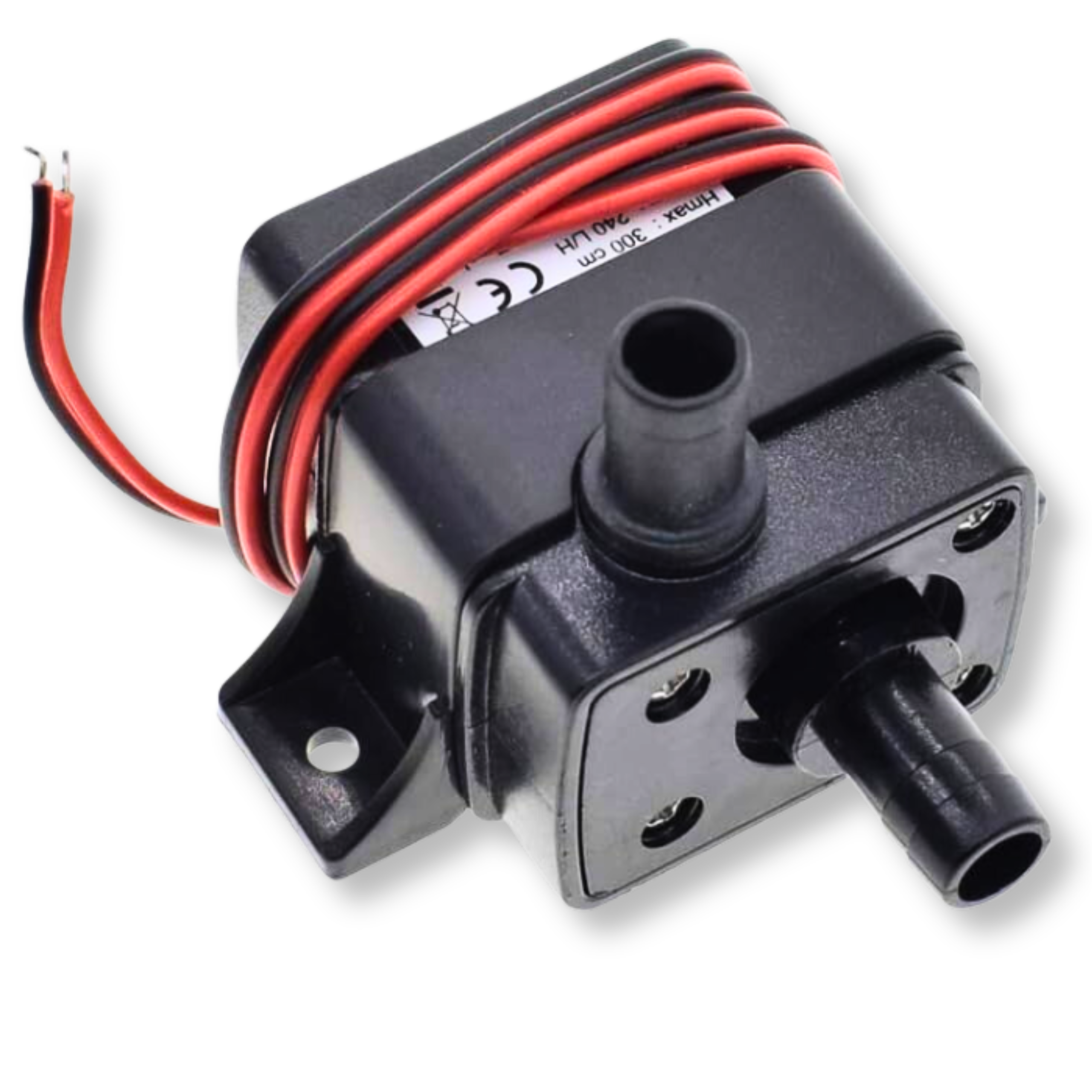 Compact dimensions of 55 x 35 x 45 mm make installation easy even in very tight spaces. The unit can pump water to a height of up to 2.5 metres, which demonstrates its versatility. The kit includes a dedicated mounting bracket for easy, secure screw mounting of the pump.