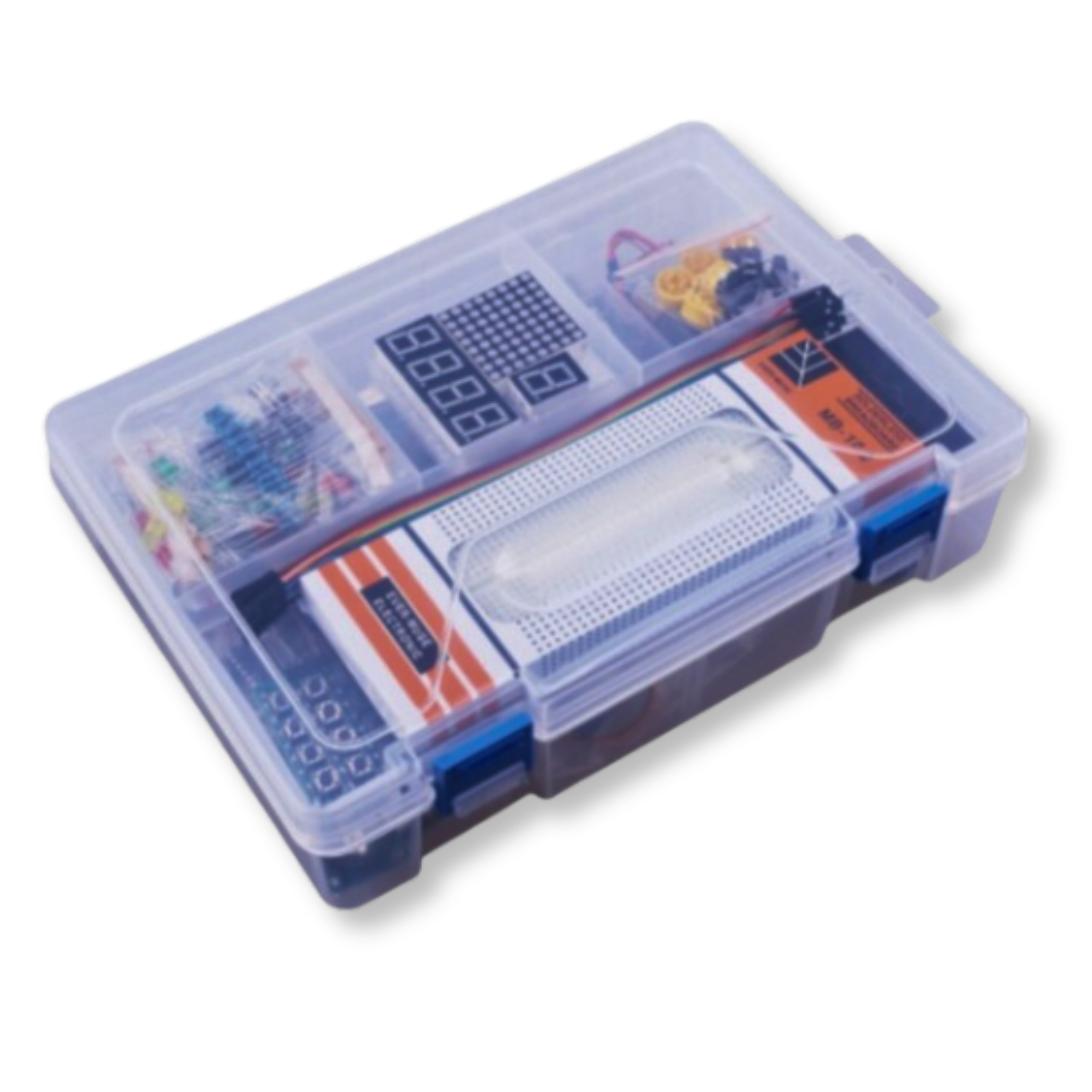 All components are stored in a practical organizer. The product works great as a gift for electronics enthusiasts.