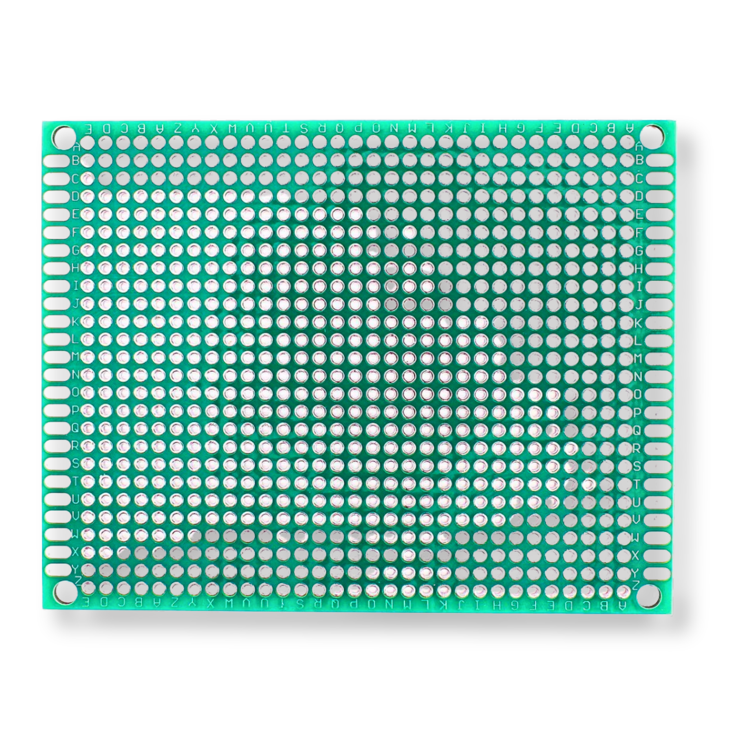 A high quality double-sided prototyping board PCB measuring 7x9 cm (70x90 mm), made from excellent laminate. This versatile board is ideal for rapid prototyping without the need for design - simply solder the components and connect them according to your needs. Thanks to the high quality of the laminate, the board is also suitable for simple production projects. The metallised holes are ideal for the assembly of through-hole components (THT), ensuring durable and reliable connections.