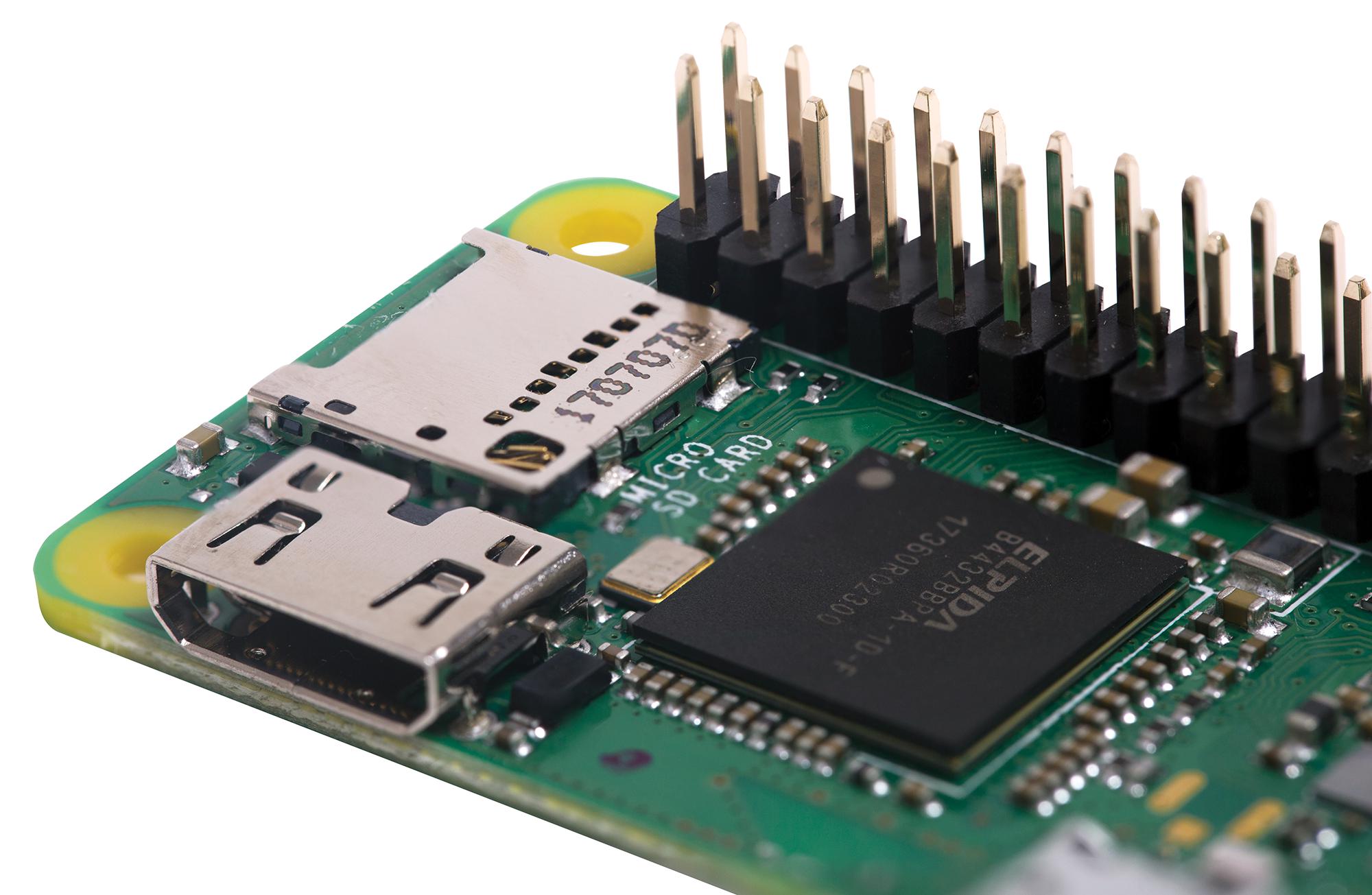 The Raspberry Pi Zero WH also features a miniHDMI port, microUSB OTG socket and 40 GPIO pins, allowing expansion and customisation for a variety of projects. There is also a microSD card slot built into the board for data and operating system storage. With an extremely compact board size of only 65 x 30 x 5mm, the Raspberry Pi Minicomputer is an ideal choice for projects requiring a small footprint.