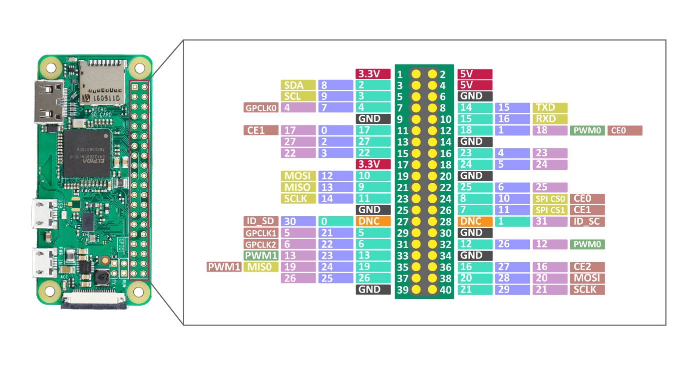 - GPIO socket: 40-pin connector (2x20 pin) 2.54 mm raster soldered on
