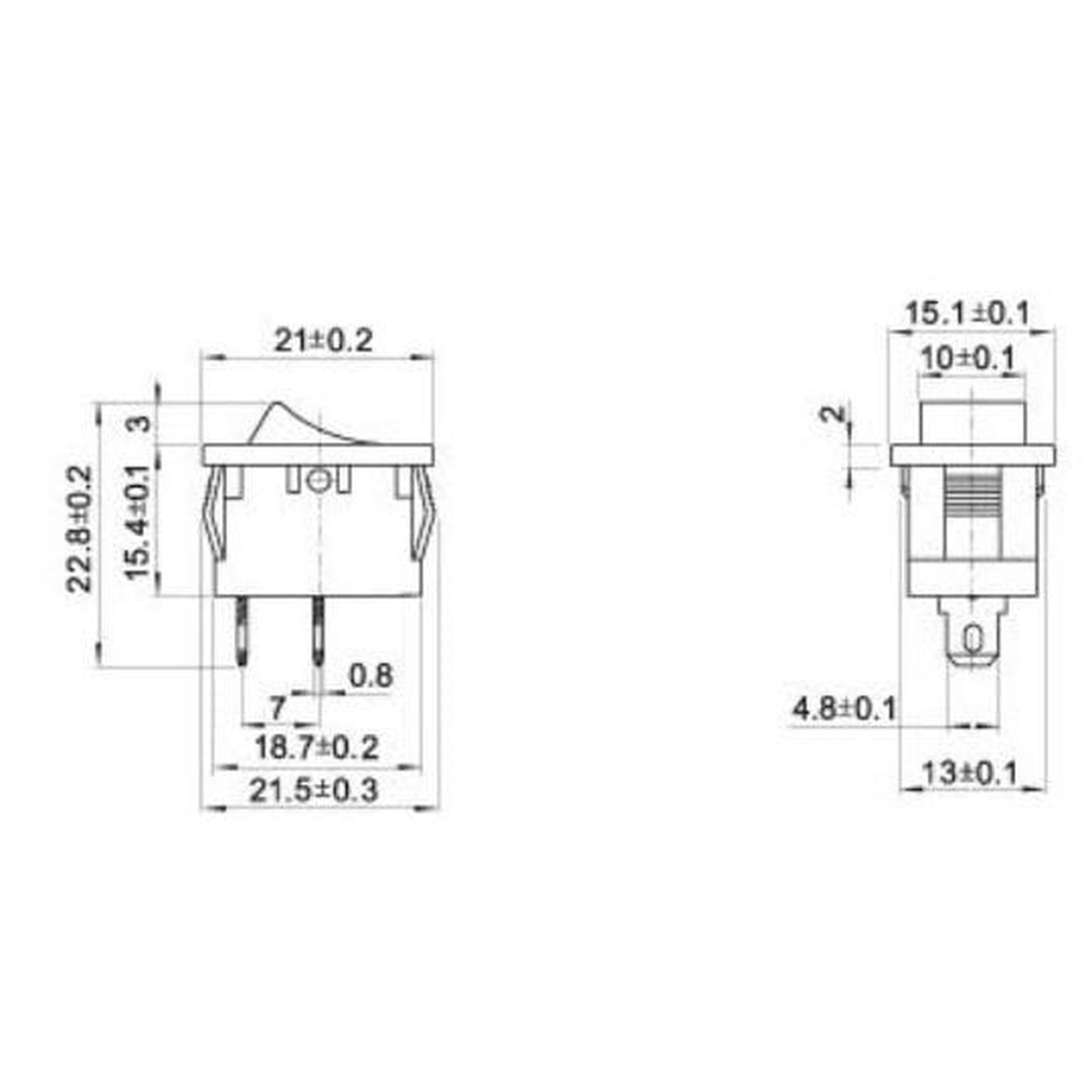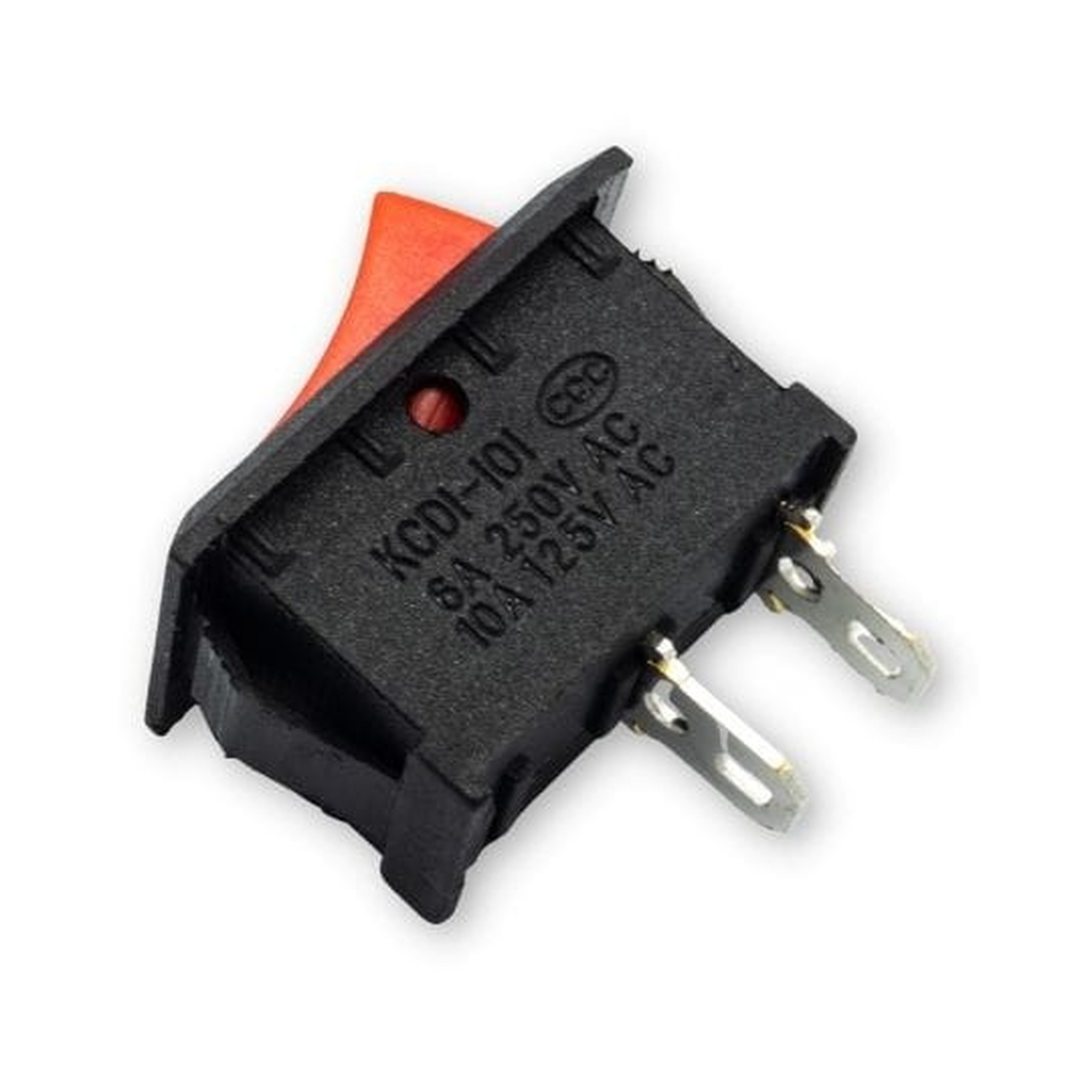The KCD1 101 switch is a reliable, miniature rocker switch for simple ON/OFF applications. It supports a maximum load of 250V AC / 6A or 125V AC / 10A. It has two switching positions and two terminals for connection. Thanks to its compact size, it is ideal for electronic projects, including as a main power switch for Arduino, ESP8266, ESP32, and Raspberry Pi.