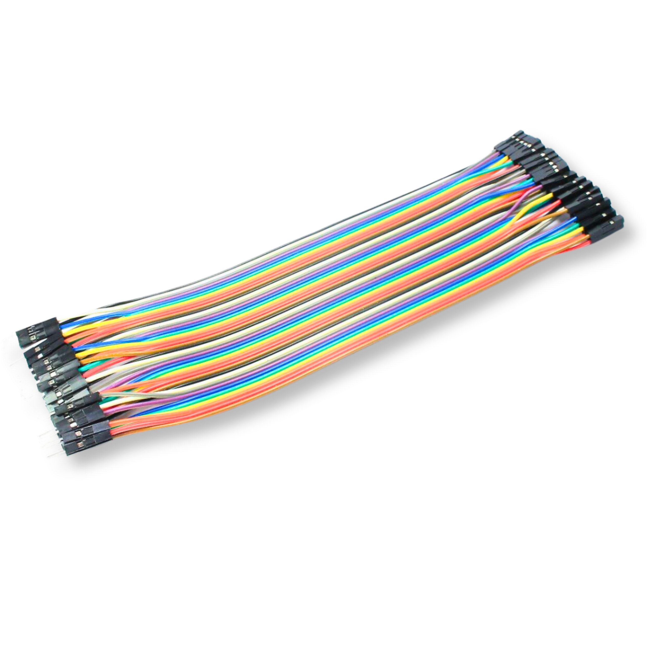 Versatile wires 40 cm long, with female connectors on one side and male connectors on the other. They fit breadboards and goldpin connectors with the most common 2.54 mm pitch. Excellent for connecting ready-made modules, these wires are essential for prototyping electronic devices. The wires are compatible with popular platforms: ESP8266, ESP32, Arduino, and Raspberry Pi.